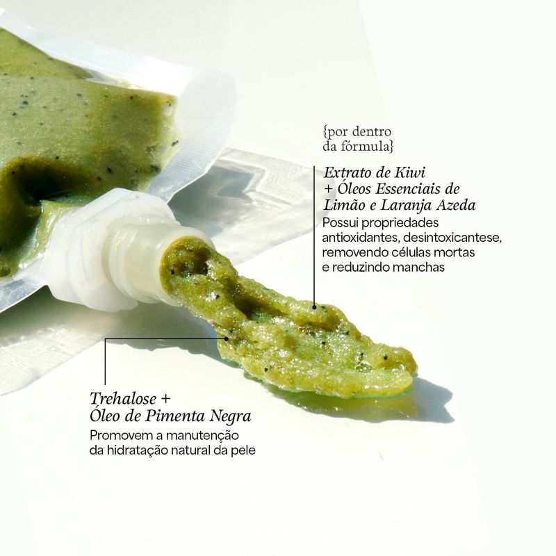 Sua fórmula contém 89,7% de produtos naturais ou derivados. Em sua composição é possível encontrar óleos essenciais de limão e laranja azeda, que apresentam ação queratolítica e promove um peeling natural, a bergamota, com ação revitalizante e refrescante, além de tangerina, indicado para pele seca ou com linhas de expressão. O extrato de kiwi também presente na Polpa possui propriedades antioxidantes, desintoxicantes, emolientes, hidratantes e remineralizantes. A fórmula ainda conta com um esfoliante natural que promove esfoliação física e aumento da renovação natural da pele. A trehalose presente na fórmula promove a hidratação da pele e o óleo de pimenta negra em cápsulas proporciona uma hidratação natural da pele enquanto limpa com suavidade.