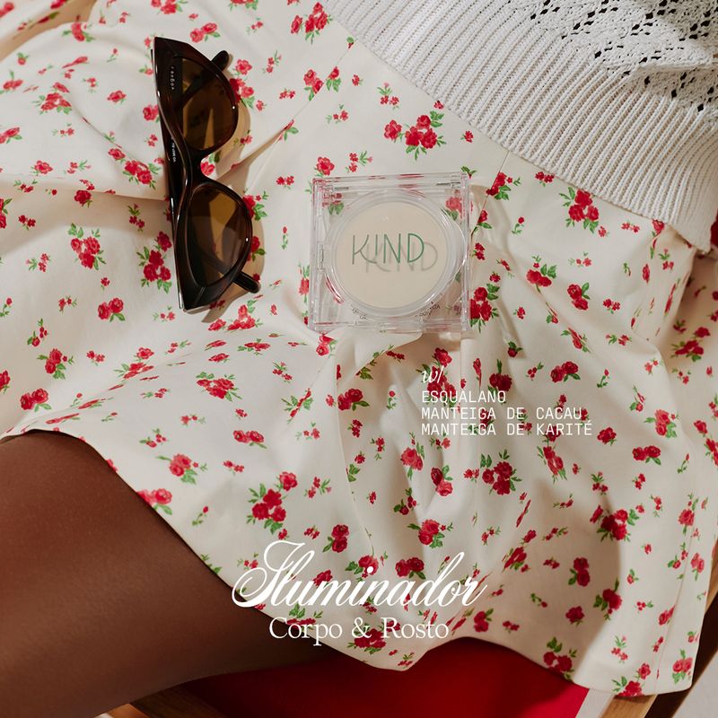 O KIND ILUMINADOR é perfeito para destacar pontos do seu rosto e corpo, com proteção muito alta. As micropartículas brilhantes refletem a luz e, com a construção de camadas, você pode optar por um aspecto de glow natural ou apostar em uma finalização mais intensa.