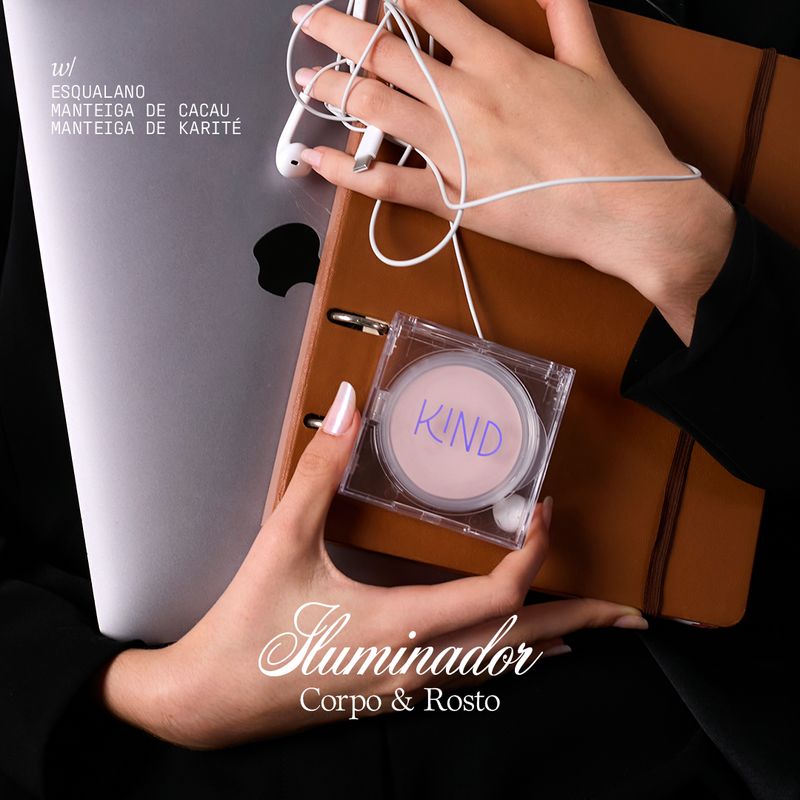 O KIND ILUMINADOR é perfeito para destacar pontos do seu rosto e corpo, com proteção muito alta. As micropartículas brilhantes refletem a luz e, com a construção de camadas, você pode optar por um aspecto de glow natural ou apostar em uma finalização mais intensa.